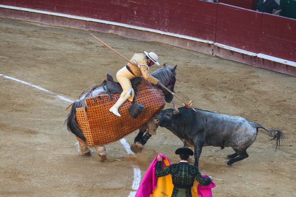 Если кто-нибудь представляет себе быка бедным, беззащитным, невинной жертвой кровавого зрелища пресыщенных людей, тот, по незнанию, глубоко заблуждается. Бык-это живой танк в тонну весом, агрессивное орудие убийства, перед которым щуплый матадор-хворостинка с мулетой в руках, и пикадоры на лошадях в ватных доспехах просто куклы-неваляшки.